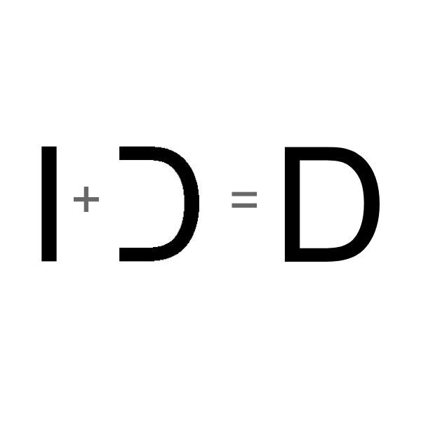 - The semi-circle symmetry and its attachment to the vertical stroke differentiate “D.”